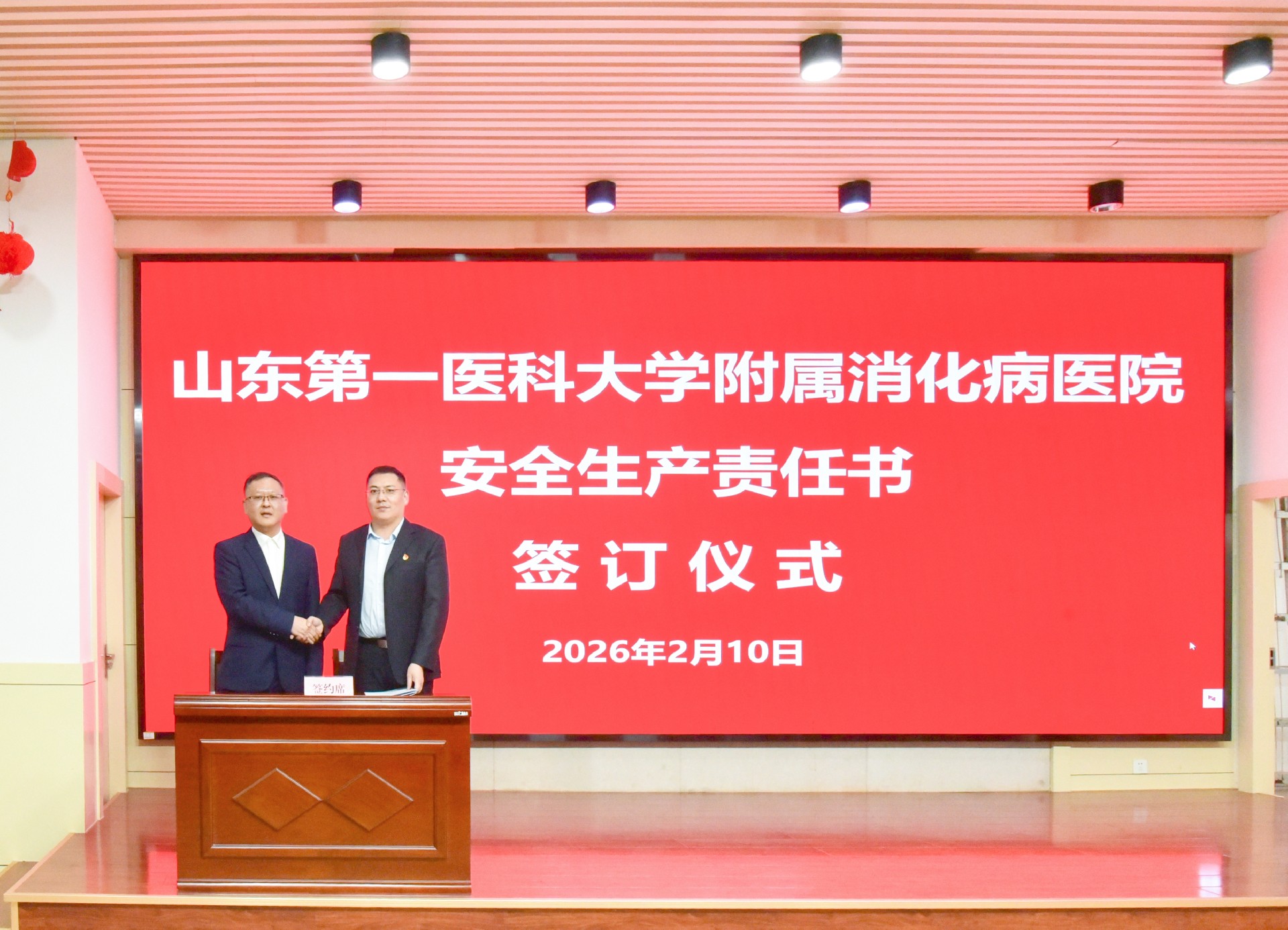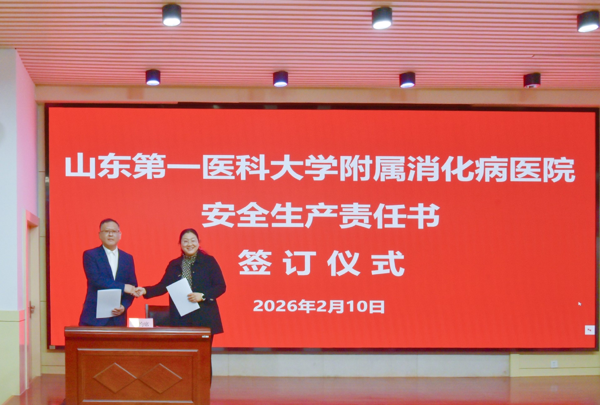 宋巧霞代表所党委,与附属消化病医院签订2026年度临床高质量发展目标责任书;赵洪礼代表消化病医院与主要责任科室签订2026年度安全生产目标责任书。